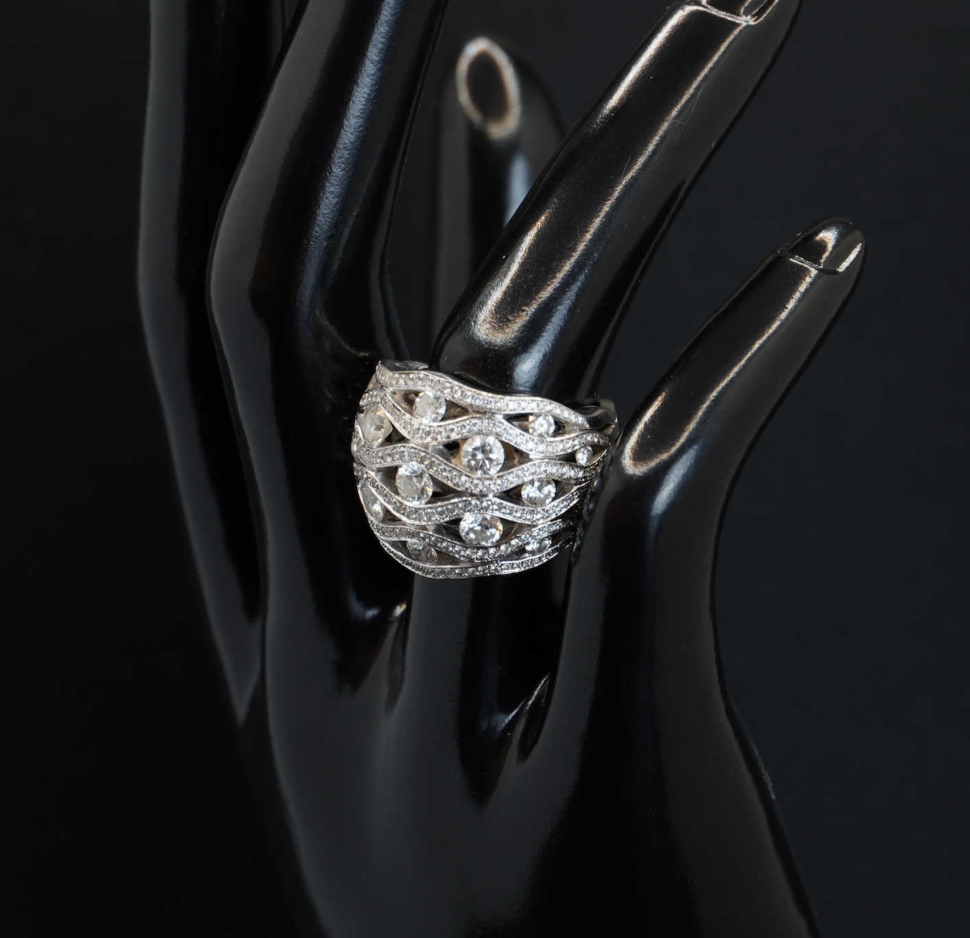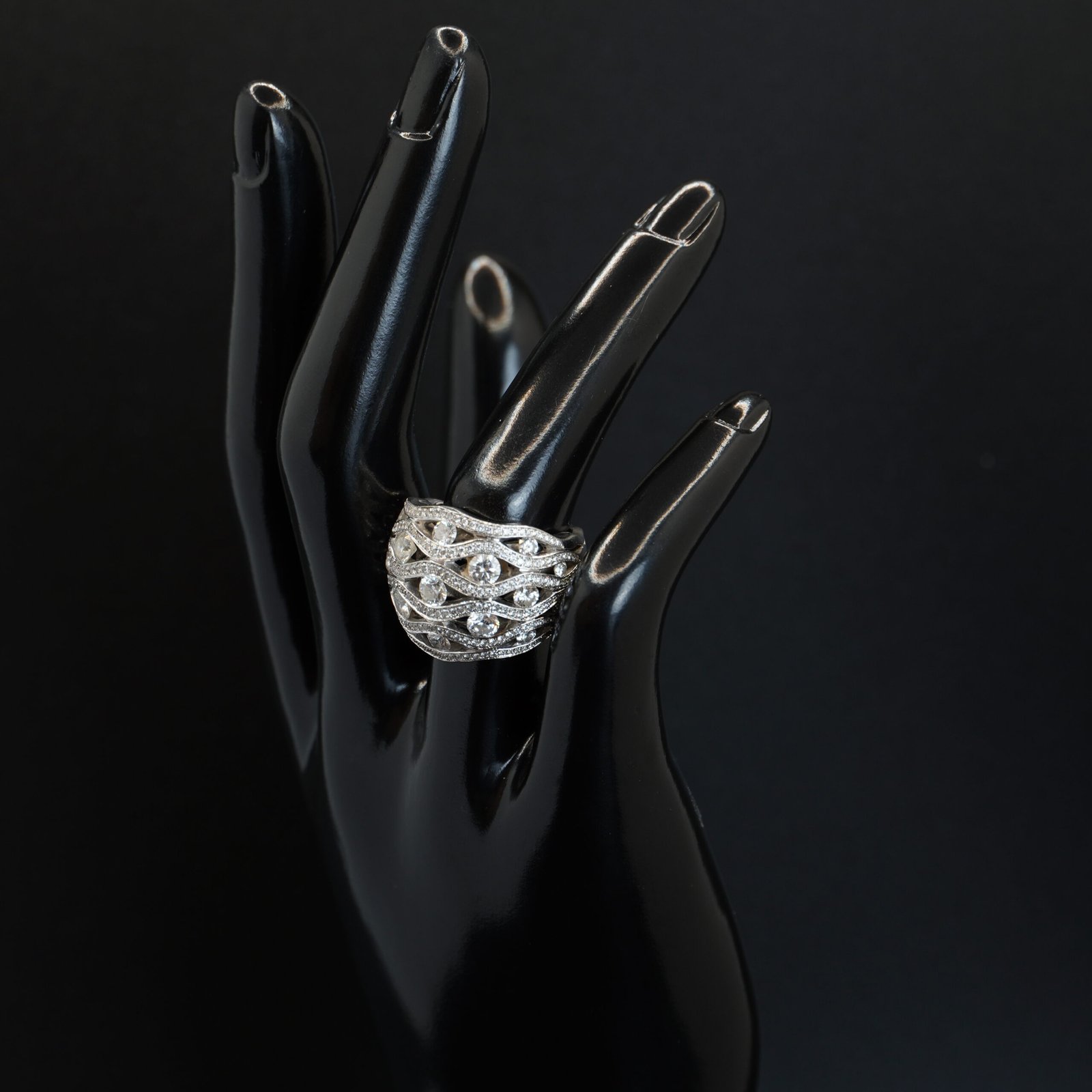 Une bague signée “WASKOLL” en Or Blanc 18 carats sertie de dix-neuf Diamants taille Brillant et de deux cents quarante quatre petits Diamants taille Brillant